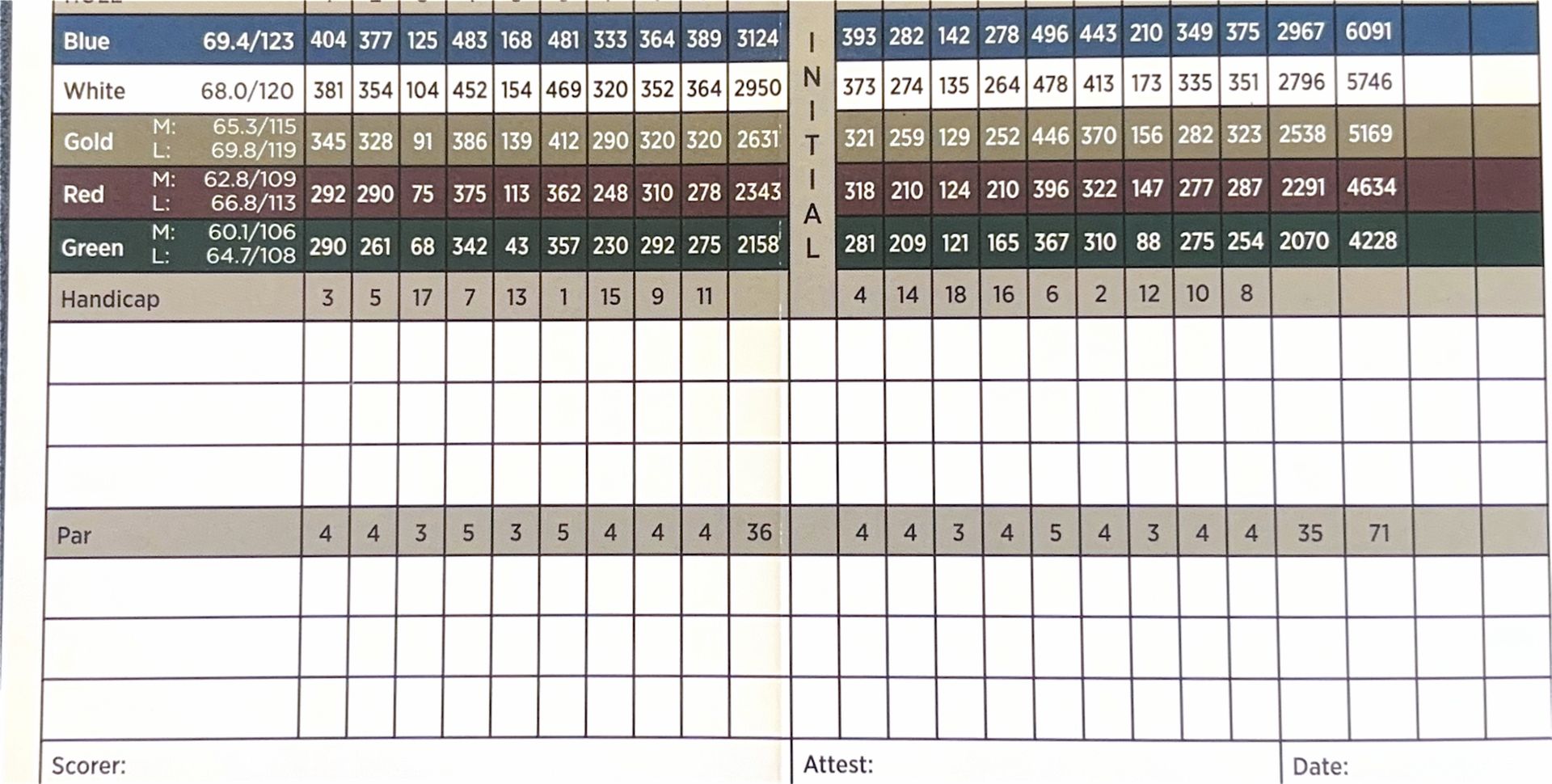 The 18-hole course at Southmoore in Bath, Pennsylvania features 6,091 yards of golf from the longest tees with a par of 71. The course rating is 69.4 and has a slope rating of 123. Designed by James Blaukovitch, ASGCA, Southmoore Golf Course opened in 1994. Southmoore offers an additonal 4 sets of tee markers to suit all skills levels.